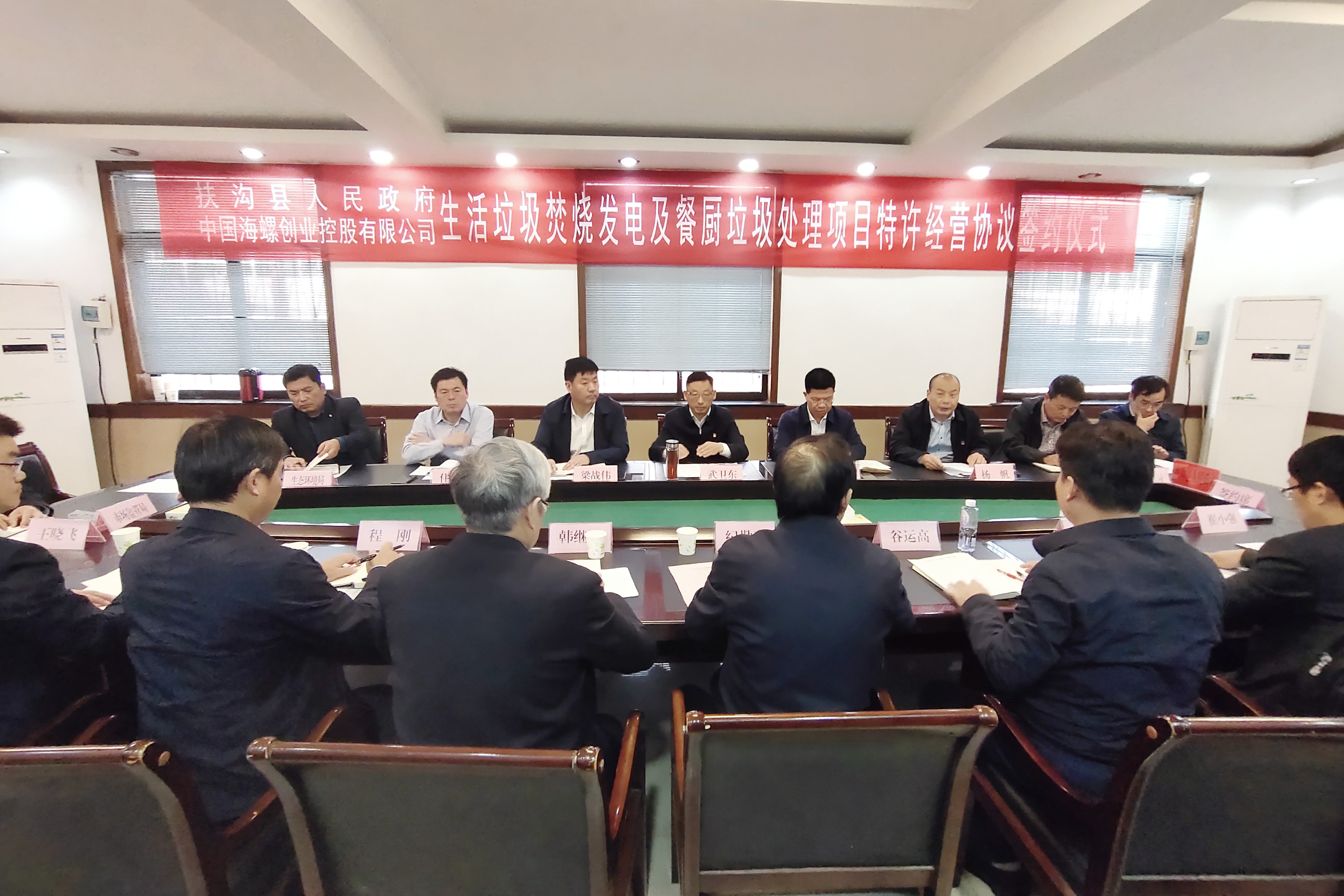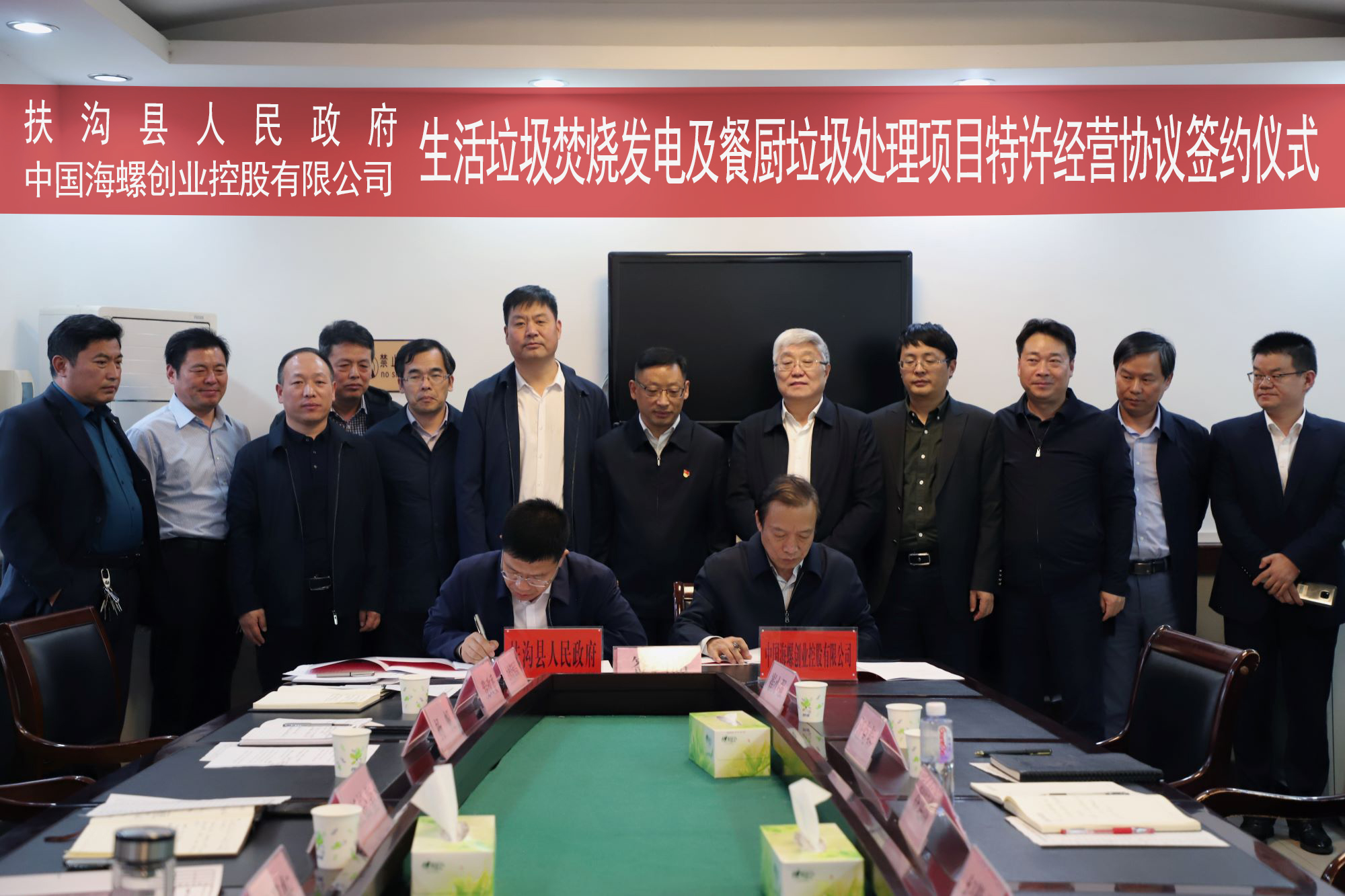 簽約儀式在扶溝縣政府會議室舉行,由扶溝縣政府辦主任楊帆主持。海螺創(chuàng)業(yè)總經(jīng)理紀勤應(yīng)和扶溝縣委常委統(tǒng)戰(zhàn)部部長任松奎分別代表雙方簽約。